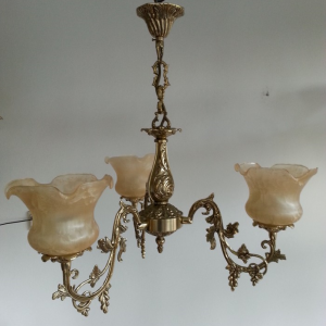 Żyrandol z mosiądzu sześcioramienny z kloszami B